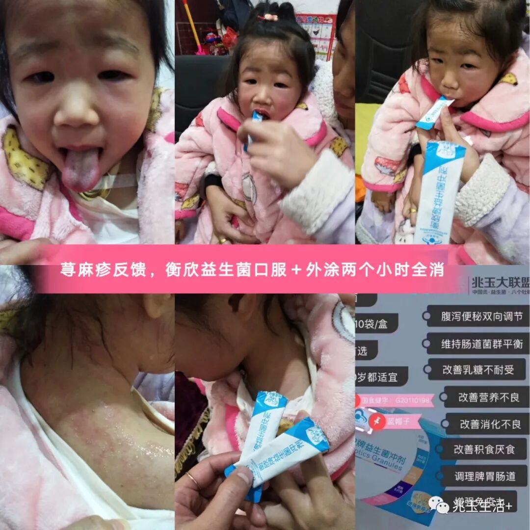 孩子一岁多时荨麻疹,鸡蛋、芒果......很多食物都不以吃,益生菌调理几个月后荨麻疹好了,什么都能吃,而且现在四岁了也没再犯过,益生菌一直做为日常保健在服用,孩子身体特别棒。