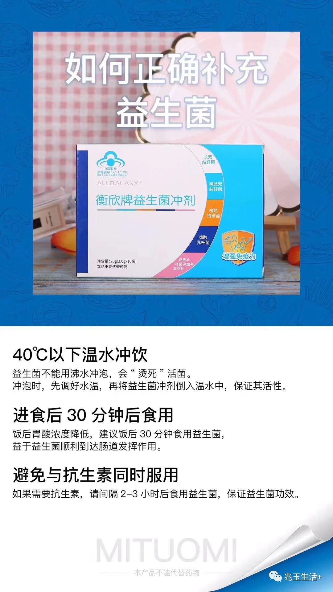 益生菌早晚各一次,一次1支 ,一岁以上宝宝每次可增加到2支。