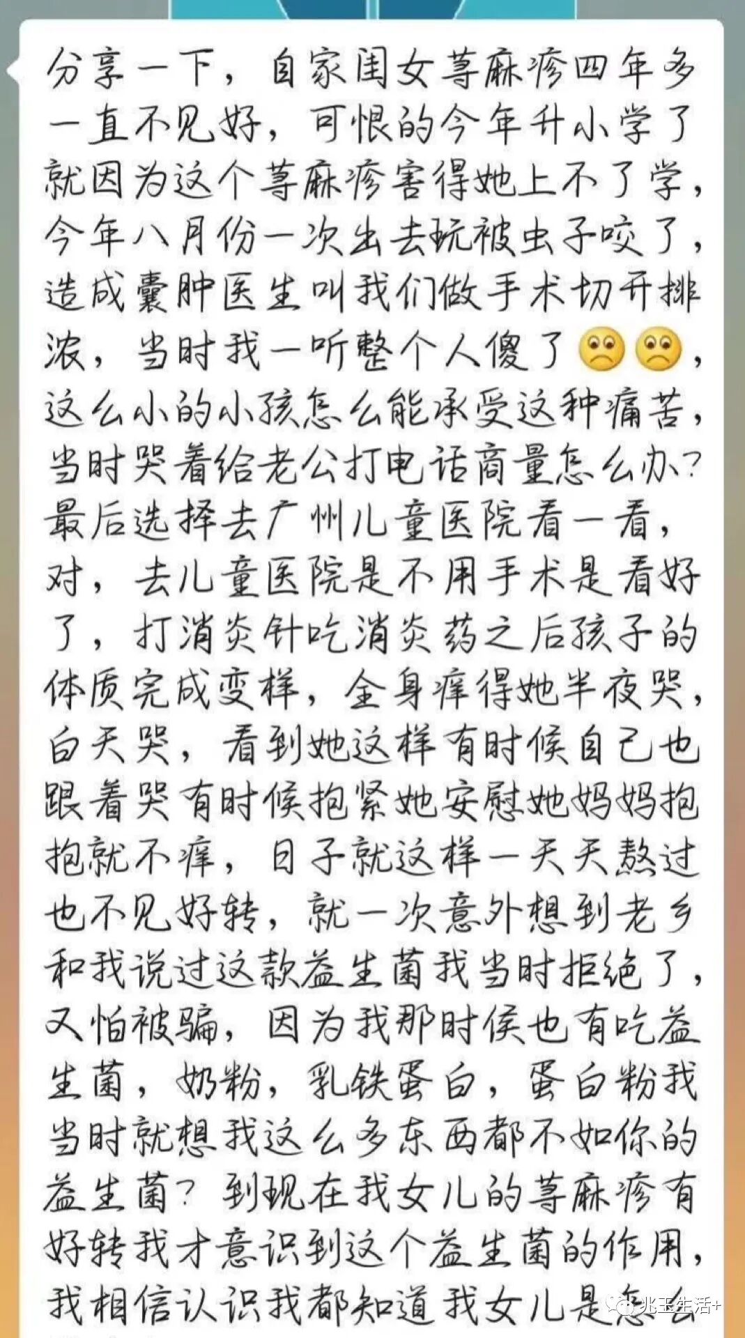 之前荨麻疹打针吃药孩子体质明显受损,通过益生菌的调理后荨麻疹得到了有效的改善。