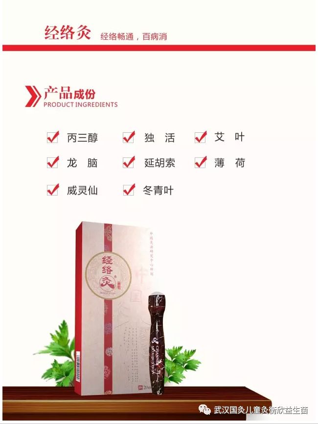 产品中的艾叶、丁香、威灵仙、独活等中药,多为芳香化湿、通络行气之品,更是可以使经穴经气通畅,百病可瘥。