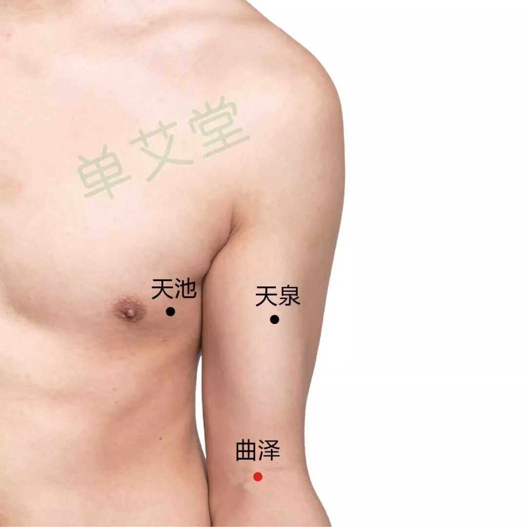心包经上重点穴位:曲泽穴;内关穴;劳宫穴;中冲穴;